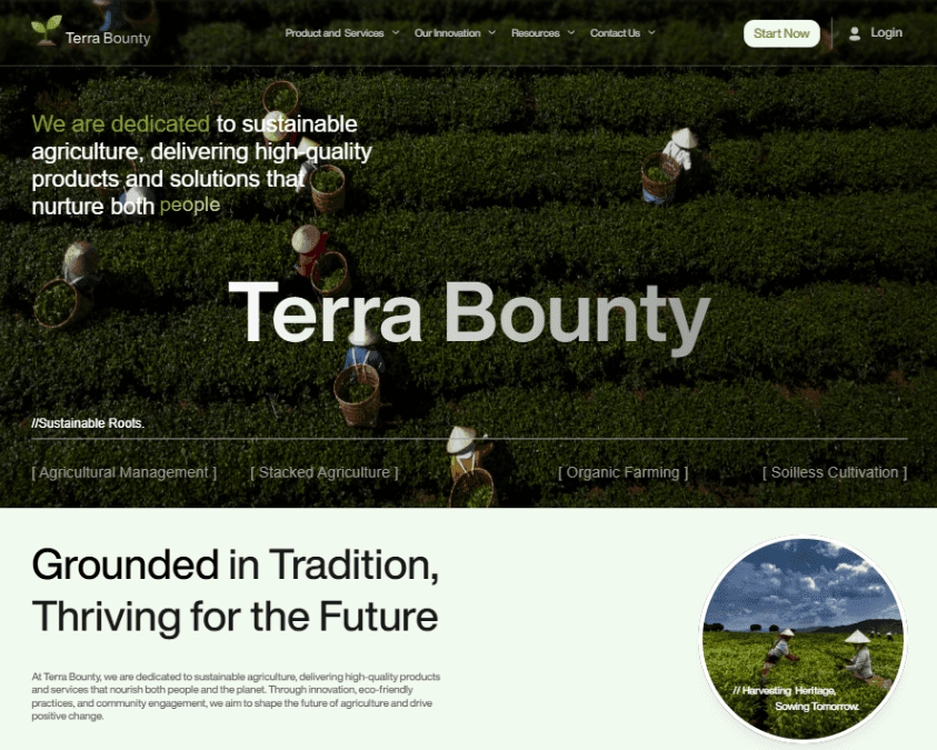 A sleek agricultural website that promotes sustainable farming, connects communities, and makes farm products easily accessible through a modern and user-friendly experience.