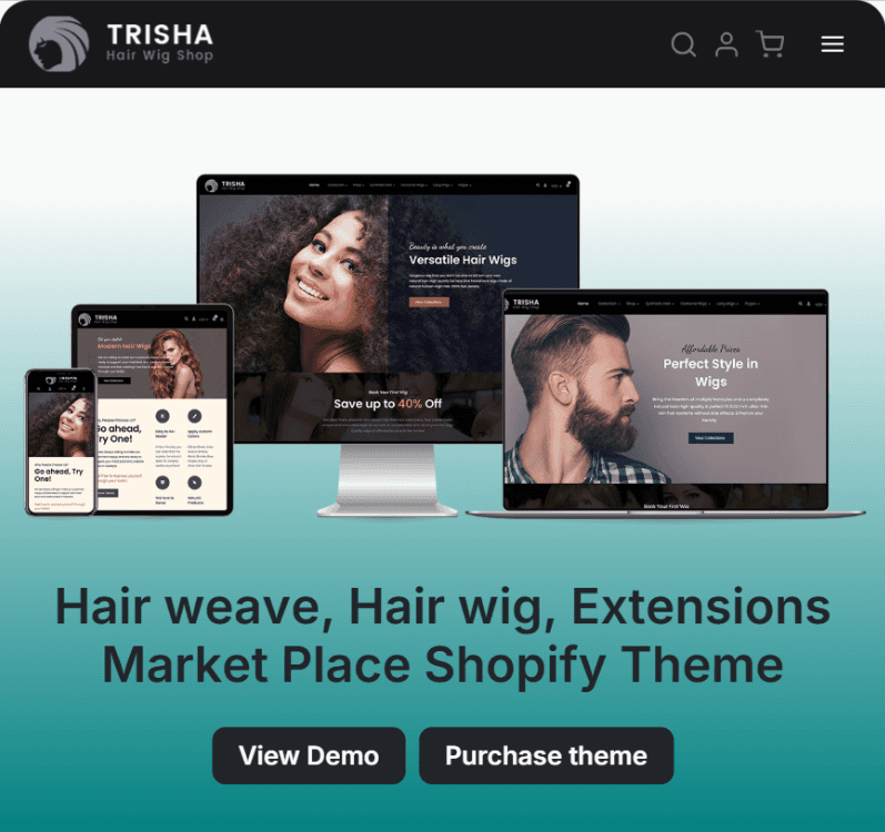 A modern e-commerce redesign for Trisha Hair & Wig Shop, featuring sleek shopping, smooth product discovery, and a stylish brand vibe that enhances user confidence and engagement.